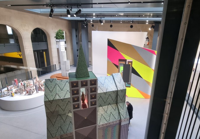 La prouesse, largement saluée par la presse, consiste cependant en un espace d’exposition de 6 500 m², entièrement modulable grâce à cinq plateaux mobiles permettant d’ajuster les volumes selon les besoins. « Ce n’est plus un musée : c’est un organisme vivant, capable de se réinventer à chaque projet. » a écrit Jean Nouvel (https://impact-european.eu/general-exhibition-fondation-cartier-paris/). Je suis allée trop vite et n’ai pas vu les plateformes se mouvoir… mais je reviendrai !
