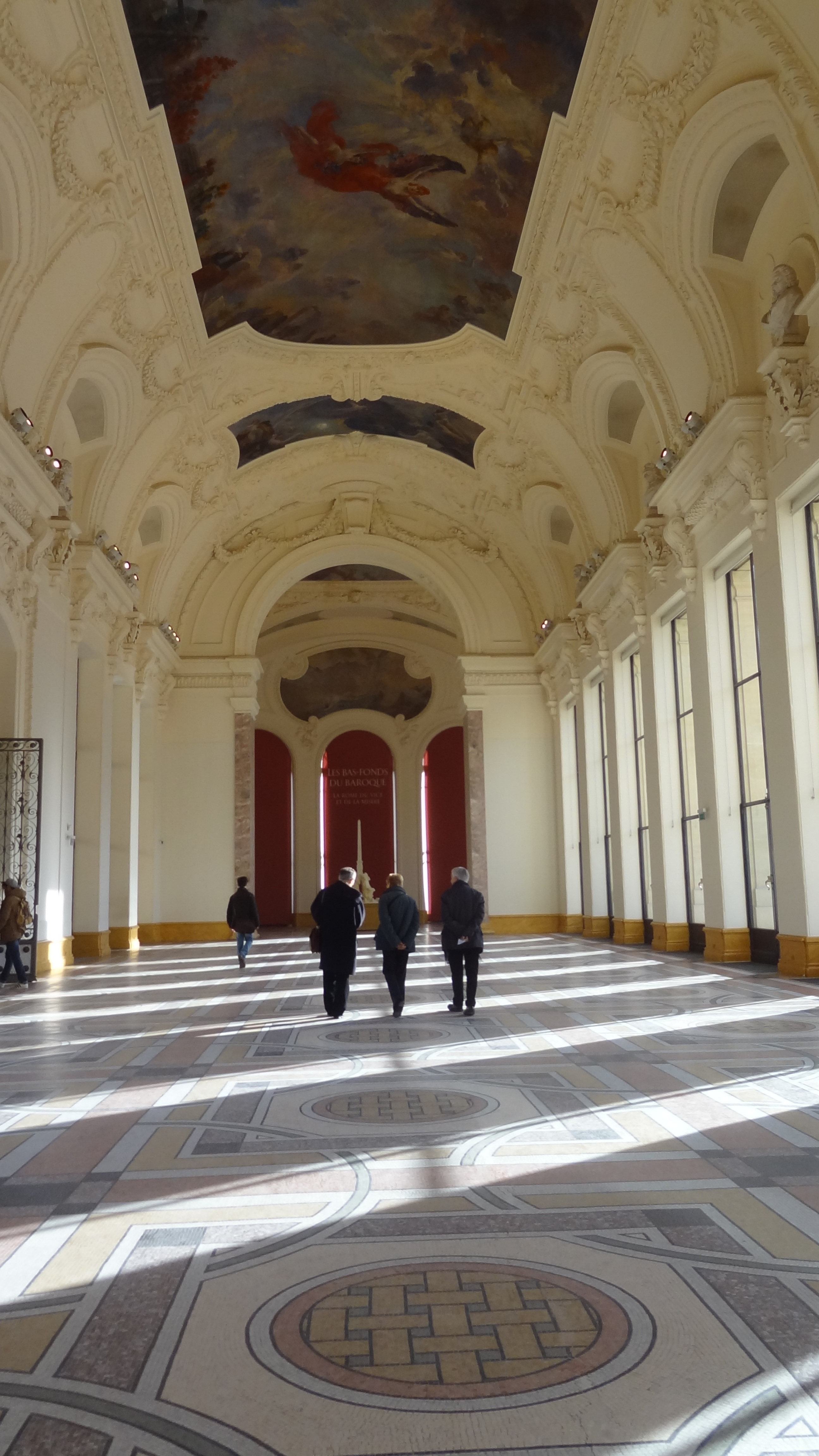 Jean Nouvel, si attaché à créer des façades immédiatement reconnaissables (moucharabiehs de l’Institut du monde arabe, envol des oiseaux de la Philharmonie, reflets des Tours Duo), a ici préservé les façades haussmanniennes d’origine pour réserver son geste architectural à l’espace intérieur. Pour la spectatrice profane que je suis, l’originalité du projet tient à la faible présence des cloisons : le regard file loin, traverse des zones d’ombres, émerge de l’obscurité pour retrouver la lumière. L’ouverture est aussi verticale…