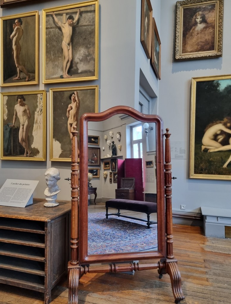 Le musée Fabre est idéal. Il n’est pas trop fréquenté. Il a un fond classique étoffé et des collections importantes de Bazille, de Courbet et de Soulages. C’est l’occasion de s’arrêter devant des peintres que j’ai croisés par hasard lors d’expositions. Ainsi Georges-Daniel de Monfreid, le père de l’écrivain baroudeur qui a fait rêver les adolescents d’après-guerre. J’ai aimé son portrait de fillette lors de l’expo pastel d’Orsay et voici le portrait d’un ami, René Andreau. On connaît Monfreid en tant qu’ « ami fidèle de Gauguin ». Pour la deuxième fois, je m’enchante de ses couleurs, ici des rouges orientaux. Peut-être, l’attitude du modèle n’était-elle pas jugée assez virile ? Elle devient regardable en 2023.