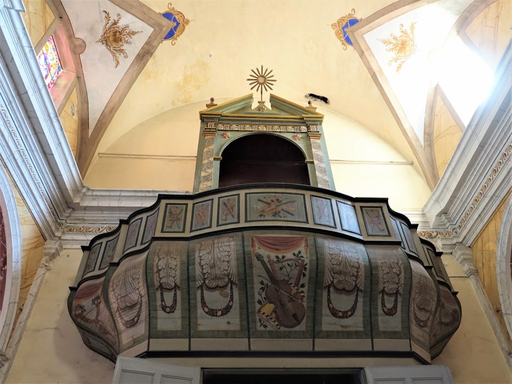avec l’ église et son charmant buffet d’orgue, décoré de guirlandes et d’instruments…